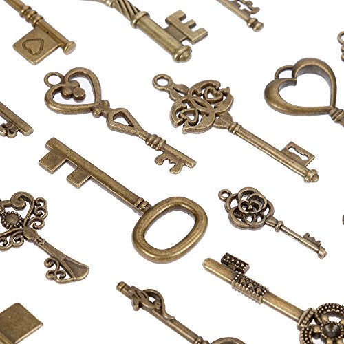 Anpro 65 Stuck Retro Schlussel Schmuck mit 10 Samtseil, 40 Retro Bronze Anhanger 25 Retro silber Anhanger Schmuck Fur Halskette Kette