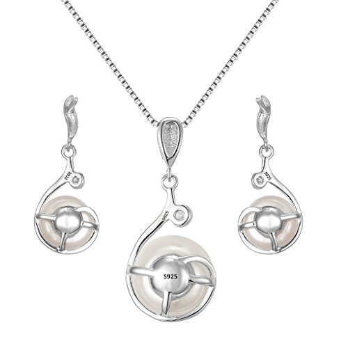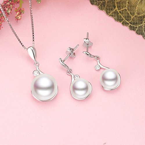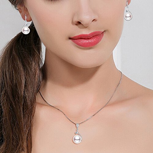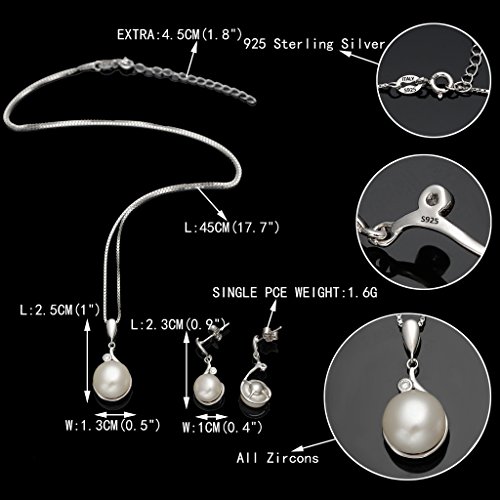Necklace Length: 45cm(17.7")-49.5cm(19.5"), Pendant Size: 1.3cm(0.5") by 2.5cm(1"), Earrings Size: 1cm(0.4") by 2.3cm(0.9"). For pierced ears only. Pearl Size: 9.0-10.0mm.