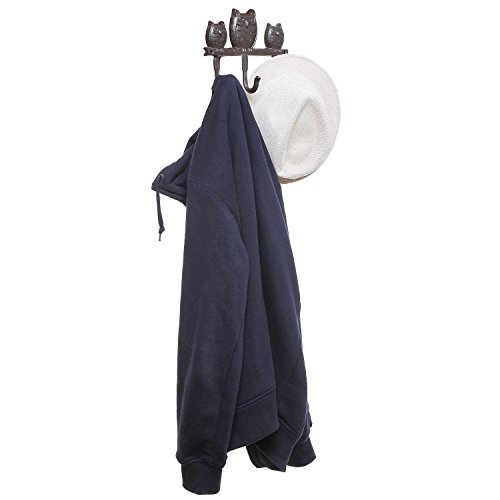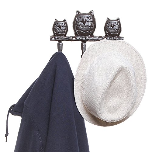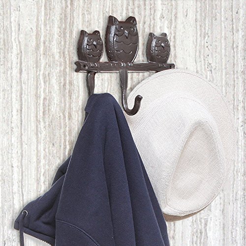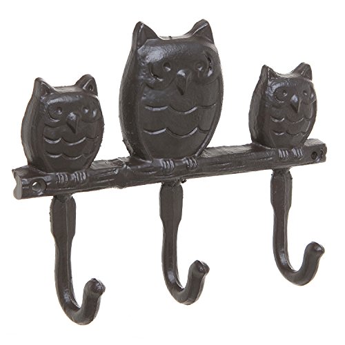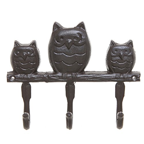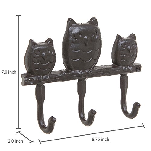 Trio Owl Design Brown Cast Iron Wall Mounted Home Storage Key & Coat Rack with 3 Hanger Hooks - MyGift