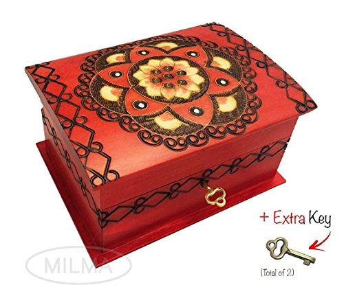 -. Binding : Kitchen -. Brand : Enchanted World of Boxes -. Feature : Brass and Copper Inlay / Fully Functional Lock and Key / Hand Carved, Branded and Stained / Made of Seasoned Linden Wood From the Tatra Mountains in Poland / Lined with Red Velvet -. Label : Enchanted World of Boxes -. Manufacturer : Enchanted World of Boxes -. Model : R-24 -. MPN : R-24 -. PackageQuantity : 1 -. PartNumber : R-24 -. ProductGroup : Home -. ProductTypeName : HOME -. Publisher : Enchanted World of Boxes -. Studio : Enchanted World of Boxes -. Title : Handmade Linden Wood Keepsake Chest Decorated With Brass Inlay Chakra Flower
