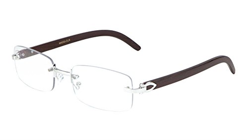 Product DescriptionThe Dapper Slim Rimless Metal Wood Print Rectangular Aviator Clear Lens Eyeglass / Sunglasses Frame.0