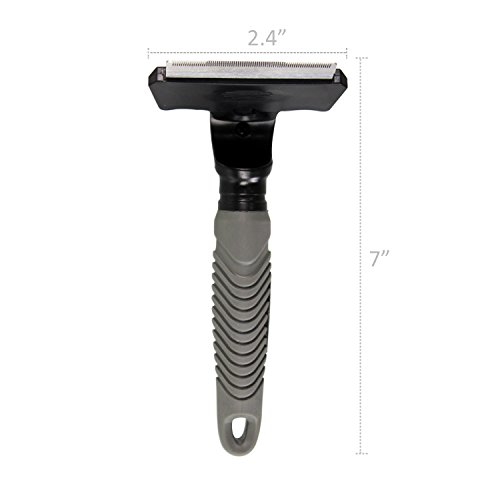 By reducing shedding up to 90%, JESPET Deshedding Tool enables you to share your home with your dog, without surrendering it to his hair. This tool is guaranteed to reduce shedding better than any brush, rake or comb. The stainless steel edge reaches deep beneath your dog's long topcoat to safely remove undercoat and loose hair. The deshedding grooming brush features a hidden button that can quickly and easily separate the brush blade from the handle. It's so easy to keep clean and well-maintained.Feature