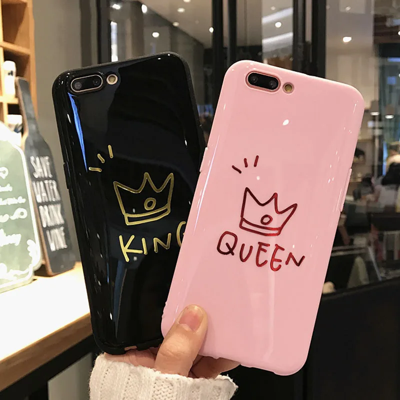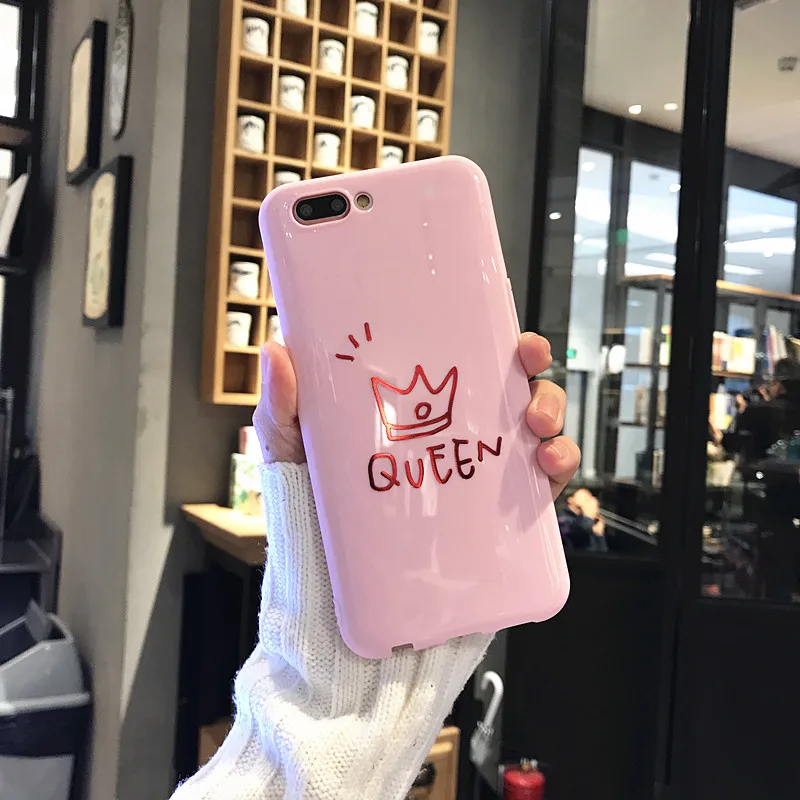 Features:Glossy Letter KING QUEEN Crown Print Design Phone Cases