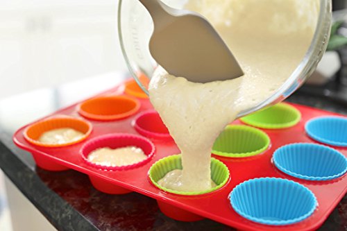Homwe 14 Pc Set Silicone Bakeware Includes Cupcake Baking Cups and Muffin and Mini Muffin Trays with Stability Bars