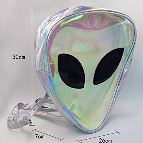 Product Description Specification: Material:Made of high quality PVC Size: 11.8 x 10.2 x 2.8 in/ 30 x 26 x 7 cm Package:1 x Alien Backpack Feature: This PVC material backpack can grab people's eyes in the crowd, so that you can show your fashion and personality style This backpack is lightweight,Two spacious zipper compartments design,can be very easy to carry to climb, go hiking, go to fitness center Hologram backpacks are so fashionable right now, and they're practical to boot This is a stylish Hologram backpack, deeply fashionable people of all ages, you will have it eye-catching in the crowd,to attract attention 0