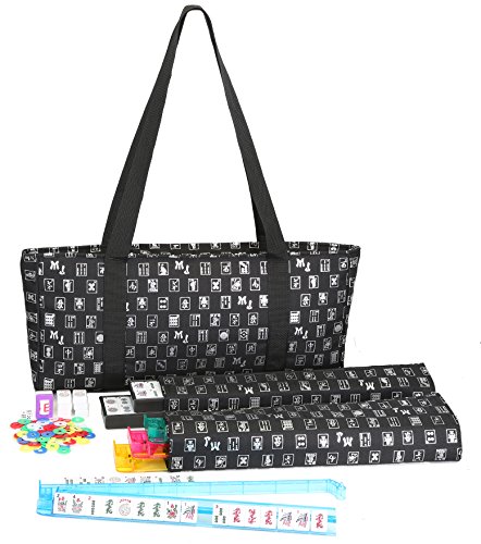 Black and Silver Mah Jongg Set Soft Carrying Case with shoulder straps, 2 matching velcro sleeve wrap for racks and tile trays plus a vinyl tile storage case. Case has a zippered closure and measures approximately 21" X 10" with large gusset for carrying full Mah Jongg set with racks. Contents: 1 Mah Jongg Soft Carry Case, 2 Matching Wrap Sleeves, 1 wrap for your tile trays and 1 Wrap for your racks. Bonus includes 1 Vinyl Tile Storage Case. DOES NOT INCLUDE MAH JONG SET OR RACKS.Feature
