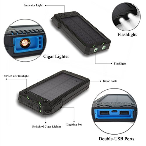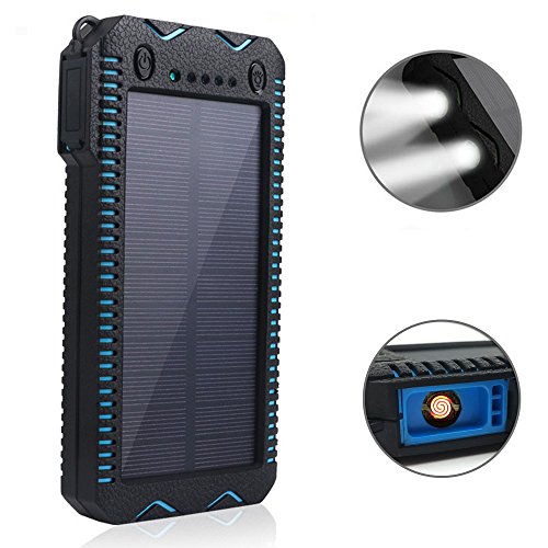 12000mAh HIGH CAPACITY - Built-in full 12000mAh high capacity polymer battery equipped with a compact solar panel, which could recharge the battery itself under sunlight, easy to be hold in hand or hang on your backpack with the hook. Perfect for road trips, hiking, camping,outdoor or whenever you need to charge your mobile devices wherever you are.