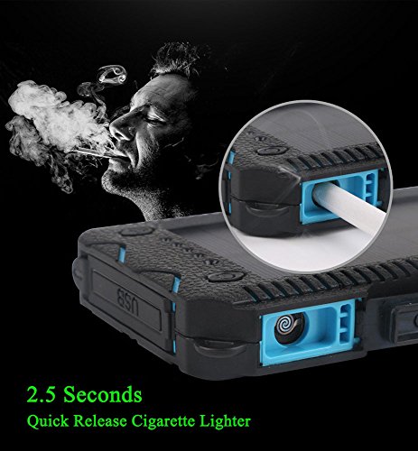 F.Dorla 12000mAh Solar Charger with Cigarette Lighter Function,Rugged Waterproof Protable Power Bank Outdoor Camping External Battery 3 Lighting Modes Flashlight for iPhone iPad Cellphones (Blue)