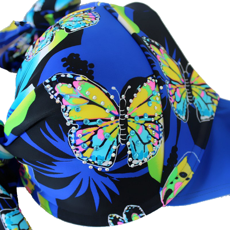Show off with this fun and SEXY Flroal Rhinestone style Bikini Swimsuit. A bralette top with tribal pattern and cutout racerback. And a matching cheeky bottom in the same print and also with chic cutout detail, full coverage and self-tie strings at sides. You are sure to be a stunner in this fancy bathing suit. It hasunderwire but no padding.
