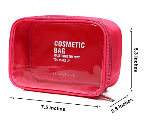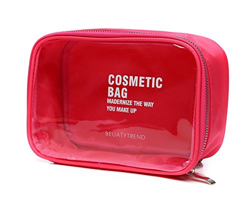 HOYOFO Zipped Travel Makeup Bags Toiletry Bag Storage Organizer Pouch with Clear Top Lid,Red