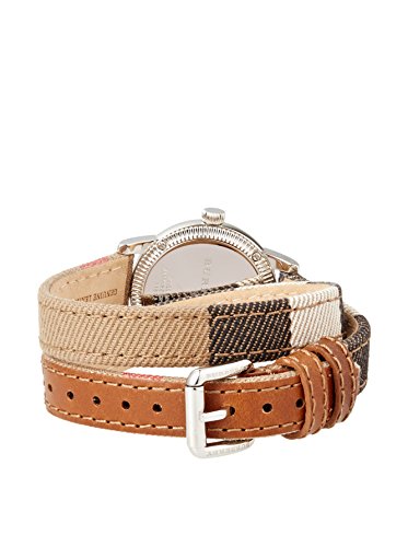 Stainless steel case with a Burberry check canvas (leather backed) double wrap strap. Fixed stainless steel bezel. White dial with luminous silver-tone hands and index hour markers. Arabic numerals mark the 3, 6, 9 and 12 o'clock positions. Minute markers around the outer rim. Dial Type: Analog. Luminescent hands and markers. Quartz movement. Scratch resistant sapphire crystal. Pull / push crown. Solid case back. Case diameter: 30 mm. Case thickness: 10.5 mm. Round case shape. Band width: 14 mm. Tang clasp. Water resistant at 50 meters / 165 feet. Functions: hour, minute, second. Casual watch style. Watch label: Swiss Made. Burbery The City White Dial Burberry Check Canvas Ladies Watch BU7849.Feature