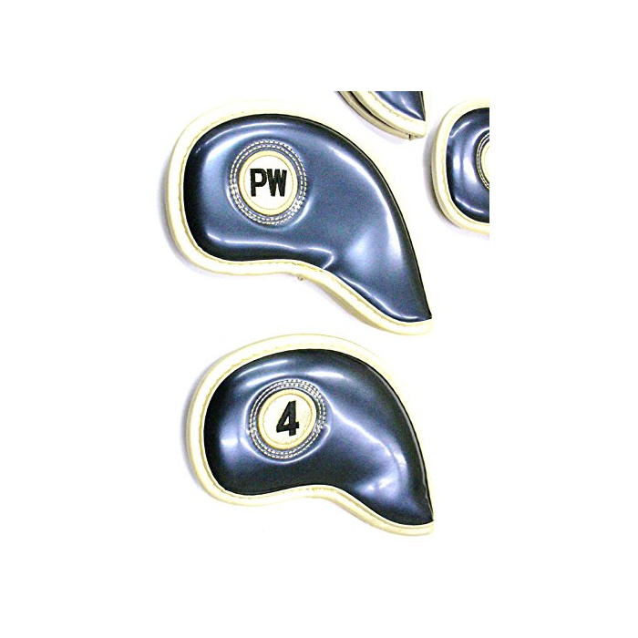 Bright and Sophia 에나멜 레더 타입 자수 들어감 아이언 헤드 클럽 커버 선택할 수 있 4색 바리에이션 10매 세트 (딥 블루)