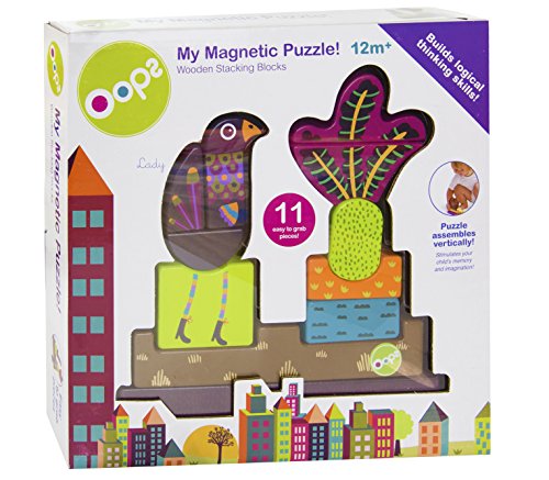 ReleaseDate : 2015-04-24 Studio : Oops Publisher : Oops Binding : Baby Product Product Description Our tremendous experience making products for small children gives rise to beautiful and creative ideas every day. At Oops, we make fun, modern, and unique toys designed to enliven households, children, and their parents by providing valuable developmental aids that help kids mature into cognitive adults. Featuring our cute bird friend Lady, this colorful and cheerful puzzle includes 11 different shapes with magnetic clasps to position blocks in the right place. Sure to keep your baby entertained for hours, this puzzle will brighten up any playroom or bedroom! Studies show that children's imaginative and mental faculties are most effectively engaged when they’re given freedom within a large limited but limited area of play. Oops toys allow children to develop their imagination, creativity, fine motor skills, and hand-to-eye coordination through guided play. 0