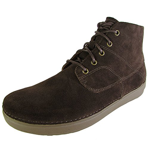Brand: FitFlop. Style Name: Flex Boot. Style #: 326. Department: Men. Country of Origin: China. Materials: Suede Upper, Rubber Sole. Lace up ankle boot. Accented with contrast stitching. Microwobbleboard midsole for added comfort. Slip resistant tread for sure footing. Heel height measures approx. 1". Shaft height measures approx. 4 1/2". 0 |