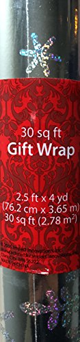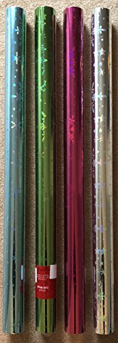 Product Description Designer Foil Christmas Wrap 30 Sq. Ft. (2.5 ft. x 4 yd) Silver Snowflakes on Pink, Silver, Green, Or Blue-SET OF 3 OF RANDOM COLORS Durable Paper 0