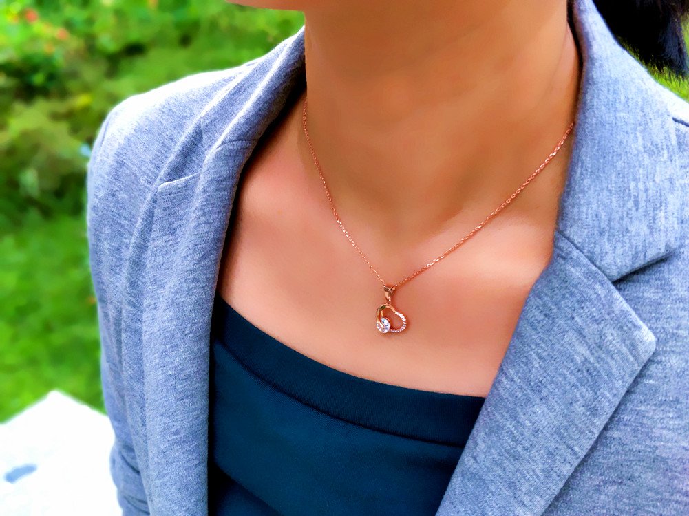 It is a necklace that shines clear zirconia shine well in pink gold.