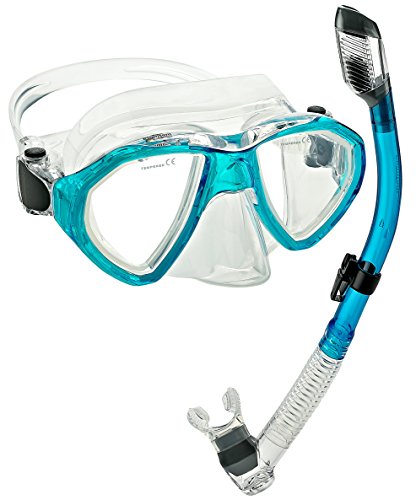 The Phantom Aquatics Lotus/Dry Snorkeling Combo has everything you need for an underwater adventure. This great set includes the Lotus Mask and Dry Snorkel, and is ideal for free diving, snorkeling and scuba diving. The Lotus Mask features tempered glass lenses, a durable silicone skirt and low volume that helps increase your field of vision in the water. The Dry Snorkel has an anti-splash end with a special valve that seals the tube as you dive. Lotus Mask: Tempered glass lenses High-quality silicone skirt Low volume helps increase field of vision Mask adapts to most faces Efficient Adjusting Low Profile Buckle System Double Feathered Edge 100% Hypoallergenic Soft Silicone Skirt Dry Snorkel: High Flow Purge Valve for Easy Clearing Special Valve that Seals the Tube as You Dive Patented Detachable Swivel Adapter Snorkel Keeper Angled, Contoured-shaped, Ergonomic Snorkel Mouthpiece.