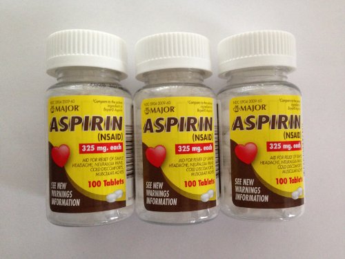 -. Binding : Health and Beauty -. Brand : Major -. EAN : 0309042009607 -. Feature : Aspirin 325mg Pain Reliever/Fever Reducer NSAID, 100 Tablets (3 Bottles) / Aspirin 325mg / aches and pains / BAYER ASPIRIN 325MG / muscle muscular headache cold -. Label : Major -. LegalDisclaimer : Disclaimer.The information on this site is for reference only. Statements regarding dietary supplements have not been evaluated by the Food and Drug Administration. It is not intended to substitute for a licensed healthcare professional advice. Please consult your healthcare professional immediately if you suspect that you have a medical problem.The photo(s) of product on this website may not look exactly the same as the actual product as manufacturers often change their labels. -. Manufacturer : Major -. PackageQuantity : 3 -. ProductGroup : Health and Beauty -. ProductTypeName : HEALTH_PERSONAL_CARE -. Publisher : Major -. Studio : Major -. Title : Aspirin 325mg Pain Reliever/Fever Reducer NSAID, 100 Tablets (3 Bottles) -. UPC : 309042009607