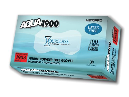 Hourglass HandPRO AQUA1900 Nitrile Ambidextrous Industrial Glove, Beaded Cuff, Powder Free, 240mm Length, 0.07mm Thick, Small (Case of 10 Boxes, 100/Box)