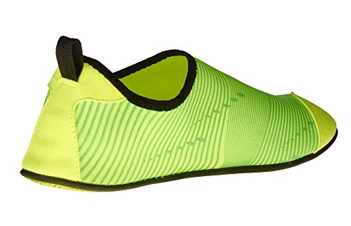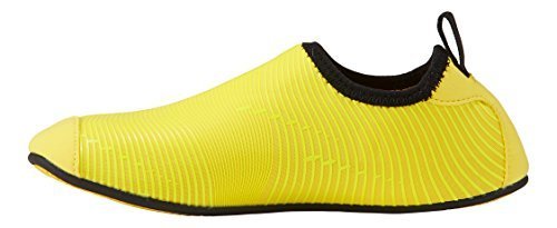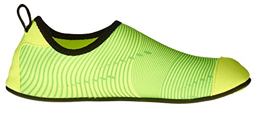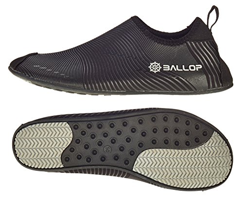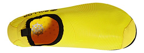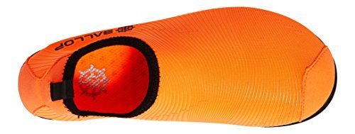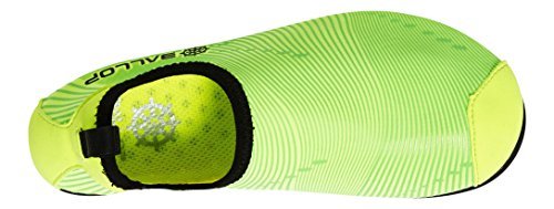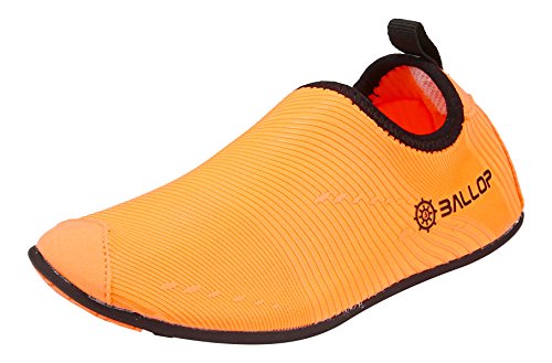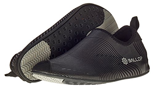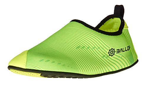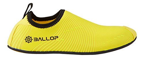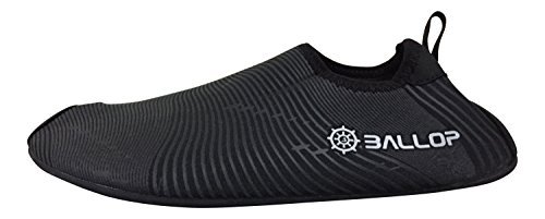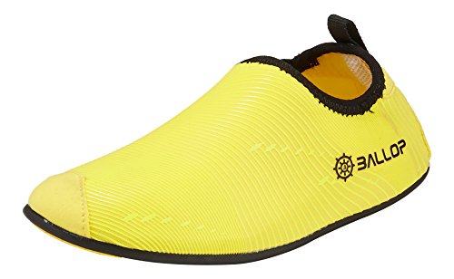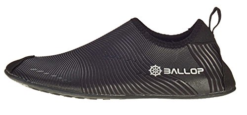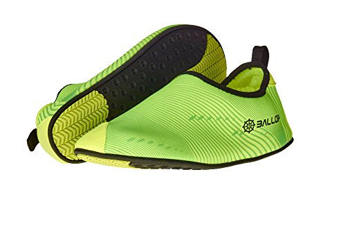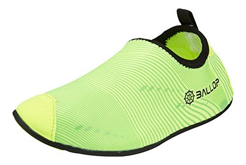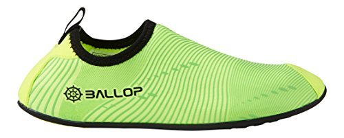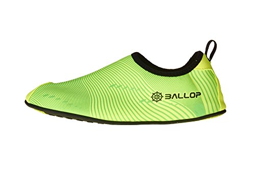 Binding : Apparel Product Description Bring some humor and enjoyment to your workouts with the Ballop wave water shoes and its unique glow in the dark feature! More than just its cool look this is a barefoot style aqua shoe that has plenty of features to accommodate you on your favorite indoor and outdoor workouts and activities. The wave is an extra light shoe that provides a snug barefoot style feel for those who enjoy barefoot workouts with just enough of a sole for protection to the bottom of your foot. The octopus sucker function on the bottom of the sole provides you excellent slip-resistance safety for wet, slick surfaces. The quick dry, water repellent fabric dries the shoes quickly. The shoes also contain reinforced suede heel and toe caps for added protection to your heel and toe. Use the wave water shoe on multiple surfaces both indoors and outdoors. It is an excellent choice for yoga, pilates, aerobics, exercising, weightlifting, walking, swimming, the beach and so much more! 0