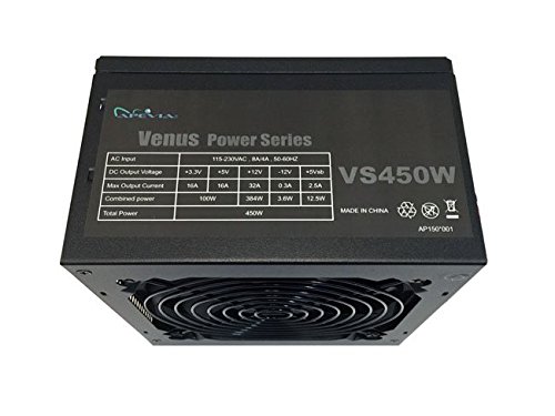 APEVIA ATX-VS450W Venus 450W ATX Power Supply with Low Noise Auto-Thermally Controlled 120mm Fan, 115/230V Switch, Components, All Protections