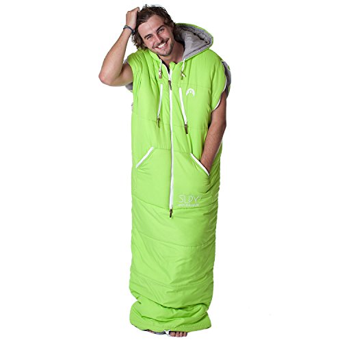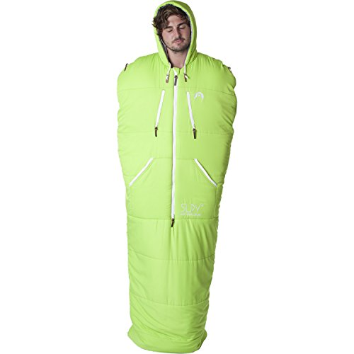 Studio : SLPY Publisher : SLPY Product Description The Mens Original Sleepy is a wearable sleeping bag you can sleep, wear and explore in. Ideal for camping, festivals, backpacking, travelling, couchsurfing or anytime you need the ability to keep warm and mobile. Constructed with YKK Zips, a Thermolite filling and a soft touch, textured pongee outer the Original Sleepy uses the best materials to provide a technical sleeping bag able to withstand temperatures down to -15 degrees. The Original Sleepy combines the best of fashion, action sports and technical outerwear to provide camping cool. With a central two way zip getting in and out the Original Sleepy is easy. Opening the shoulder zips allows the arms to come out each side and the bottom 'Zipcinch' system allows the bag to be opened at the bottom and brought up to the waist to enable you to walk around in comfort. Zip chest pockets with internal media eyelet, beard guard, padded waist pockets, embroidered logos and branded leather tags provide that quality feel that will make you fall in love with your Sleepy. Why buy a normal sleeping bag? Temperature Guide: Comfort: 5 degrees, Limit: -5 degrees, Extreme: -15 degrees Fit Guide: Medium fits up to 5Ft 11 inches tall, Large fits up to 6Ft 6 inches tall Medium bag length (excluding hood) - 185cm Medium chest width - 70cm Large bag length (excluding hood) - 208 cm Large chest width - 85cm If you like a lot of room in your normal sleeping bag or are a larger build then choose the Large even if you are a medium fit in terms of height. Compression sack dimensions: Medium is 34cm long x 20cm diameter, Large is 39cm long x 22cm diameter 0