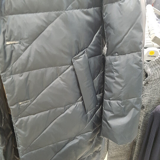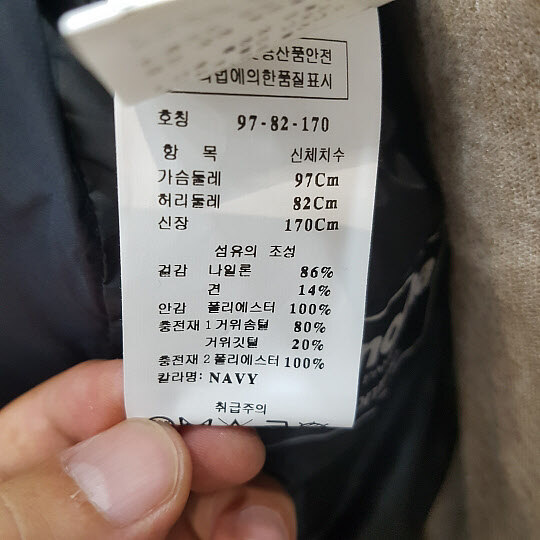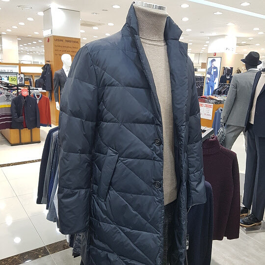 구스패딩코트로(이상적인함유량솜털80:깃털20) 매우멋스럽고 세련된디자인이며 테플론합유로 발수.발유 우수한세탁내구성 자랑합니다.