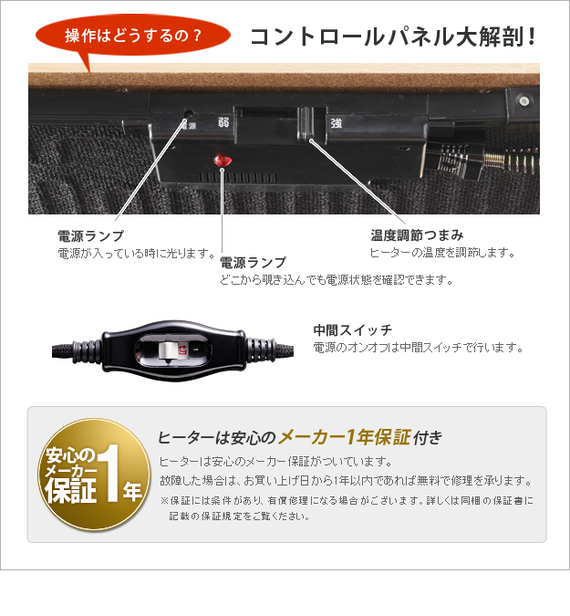 ●フラットヒーター(220W・中間スイッチ式)、コード長2.8m