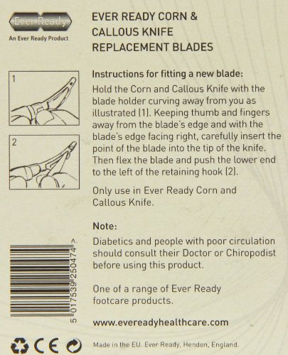 Studio : Globalbeauty Publisher : Globalbeauty Binding : Health and Beauty Product Description Ever ready corn plane replacement blades. For use with the ever ready corn plane instructions for fitting new blade are detailed on reverse of packet. Only use in ever ready corn plane. 0