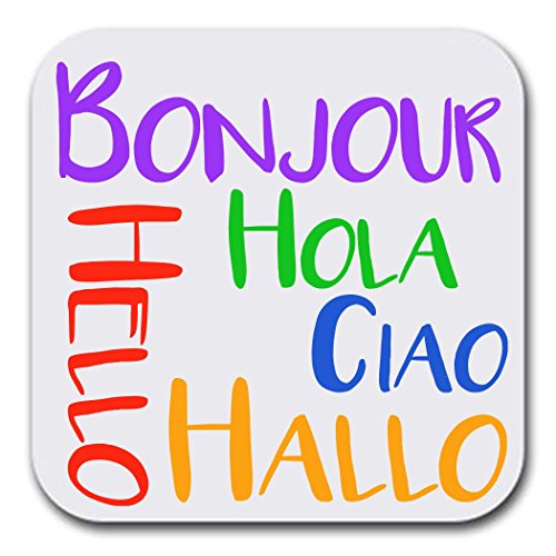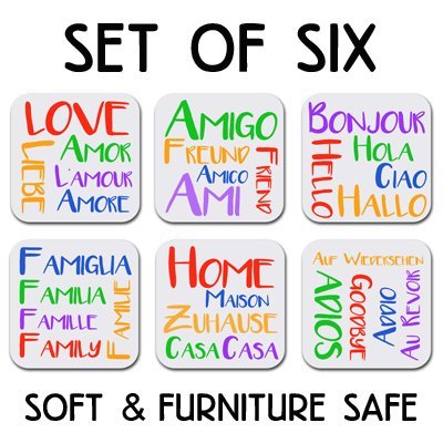 Absorbent Coaster Set - Five Languages Education - Set of Six (6) - Joke Humor Gift Coasters for Drinks | Furniture Safe - Gifts Home Office - Quality Neoprene 1/4 Inch Thickness 3.5"x 3.5"