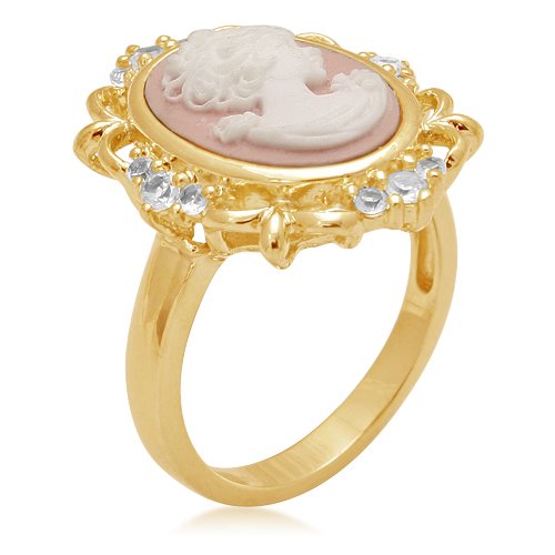 Sterling Silver Synthetic White Sapphire & Pink Cameo Ring, Size US7Feature