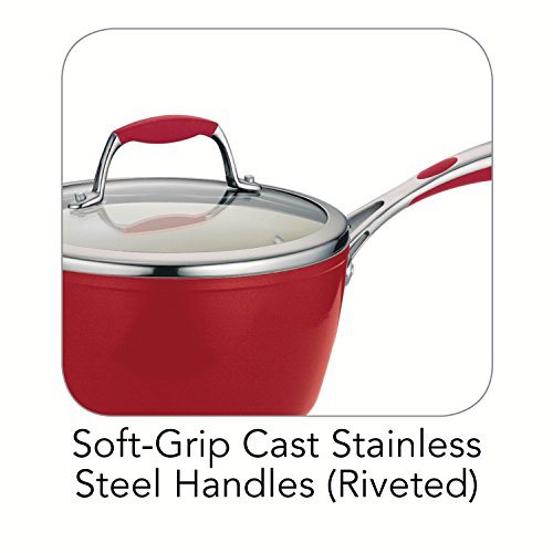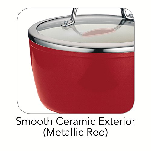 Tramontina Gourmet Ceramica_01 Deluxe Metallic Red Cookware is made of heavy-gauge cold-forged aluminum, features a smooth, ceramic interior and exterior nonstick coating, which provides simple healthy cooking, effortless cleaning and outstanding durability. The soft-grip, cast stainless steel handles ensure comfort and stability when handling cookware. The Ceramica_01 Deluxe is part of the Tramontina Gourmet collection, a series of premium products engineered and manufactured with the finest design, materials and workmanship, outperforming similar products within the market and delivering the best quality and value to the cooking professional and enthusiast alike. Dishwasher and oven-safe (up to 350 Degree Fahrenheit or 176 Degree Celsius) and compatible with gas, electric and ceramic glass cooktops. Lifetime Warranty. Made in Italy, assembled and packaged in the USA.Feature