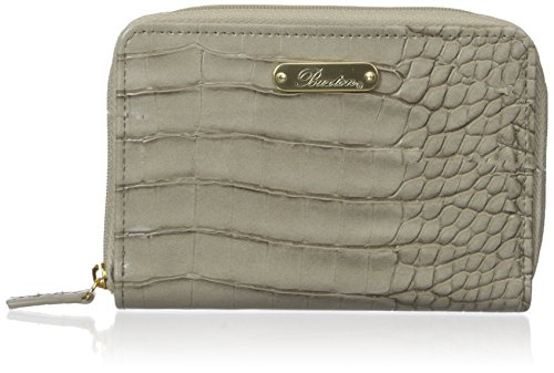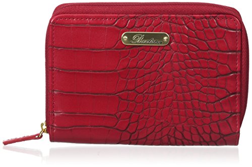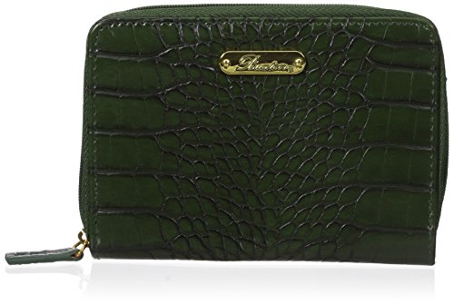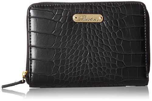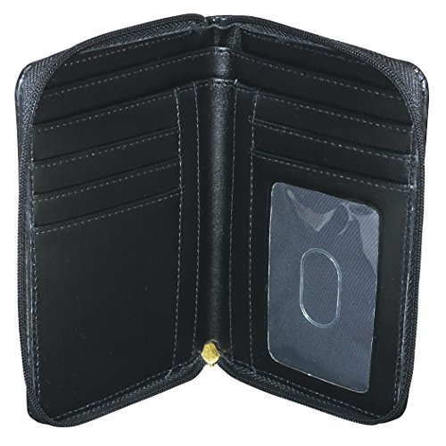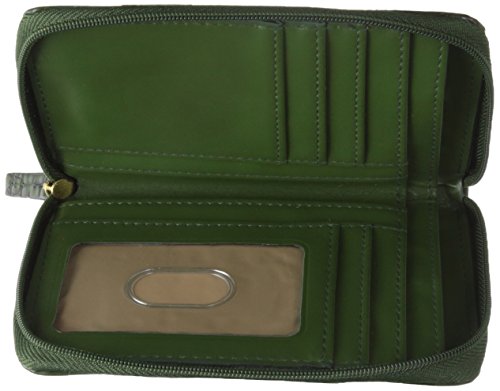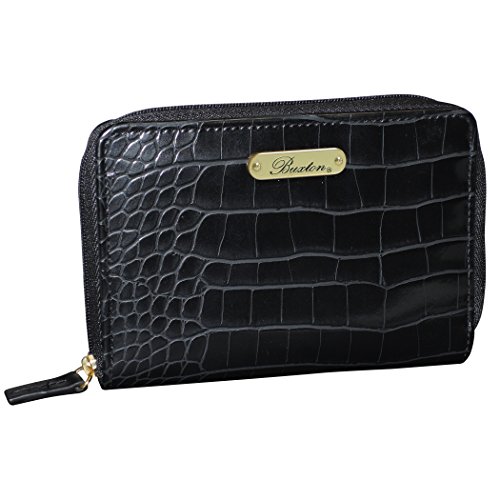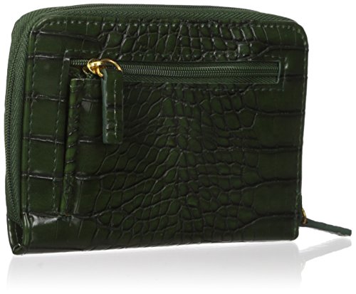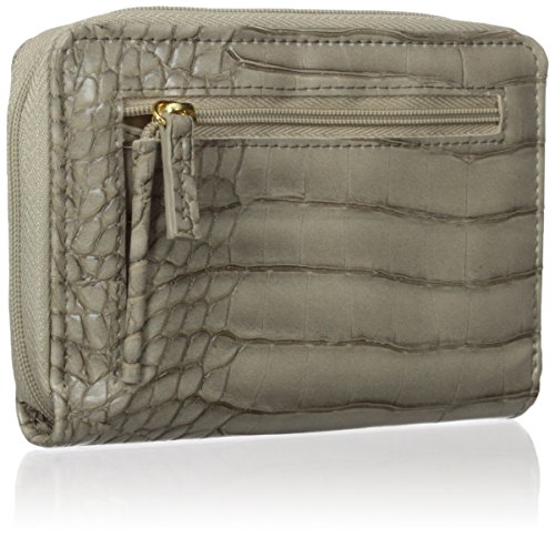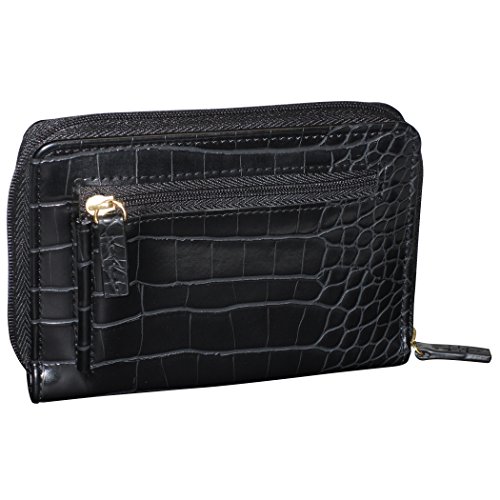 Product Description Exotic croco man-made material with gold tone hardware nile exotic medium zip-around features an outside back zipper pocket, 3 sided zipper opens to 2 large bill compartments, six credit card slots, 4 slip pockets and i.e. Window. 0