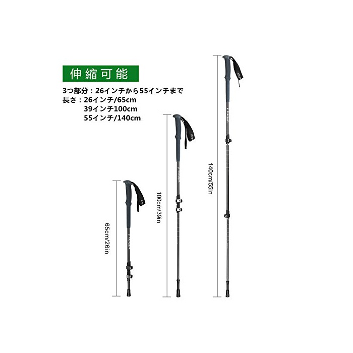 원본상품명: トレッキングステッキ GVDV 登山用杖 3段伸縮式 長さ65-140cm 超量 アルミ製 キャリバッグ付 2本セット