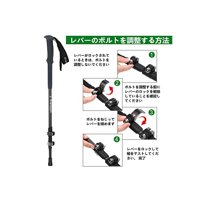 【레버 록식】신축 트래킹 폴은 레버의 조이기(묶기) 부여를 조정해 레버를 쓰러뜨리면 확실히 고정 할 수 있기 때문에,손가락의 힘이 강하지 않은 사람으로도 대추천 합니다.