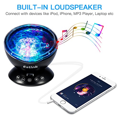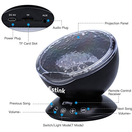 Studio : Estink Publisher : Estink Binding : Tools Home Improvement Product Description Why You Need Estink Night Light Projector? After one day's work, you need fully enjoy the calm, relaxing and soothing atmosphere in your living room or bedroom which our ocean wave projector with music player can offer to you! Or when you have been troubled by the kids' bedtime, our nursery night light projector projects 7 kinds brilliant aurora lights and kinds of ambient ocean sounds comes together, which offers a comforting atmosphere for kids' bedroom. You'll find lots of fun more than these!!