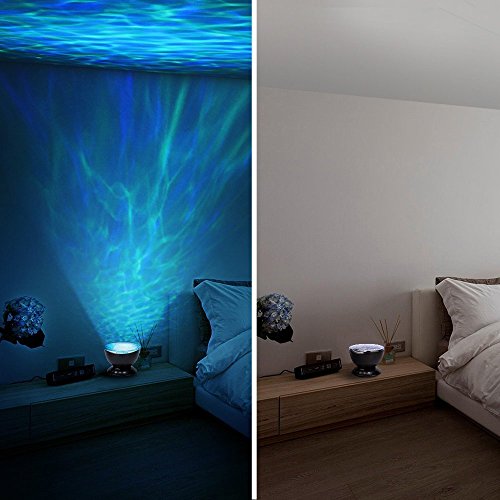 What Makes Estink Ocean Wave Projector Special? #1. Multiple lighting modes: red, green and blue mixed, with rotating ocean wave shape on the wall or ceiling, creats a romantic, and relaxing atmosphere. #2. Upgraded timer settings:1H/2H/4H for your choice, long enough time for you. #3. There is built-in music player and ambient sounds, or connect with other devices for more musics. #4. Touch key and Remote control function is working, convenient for operation.