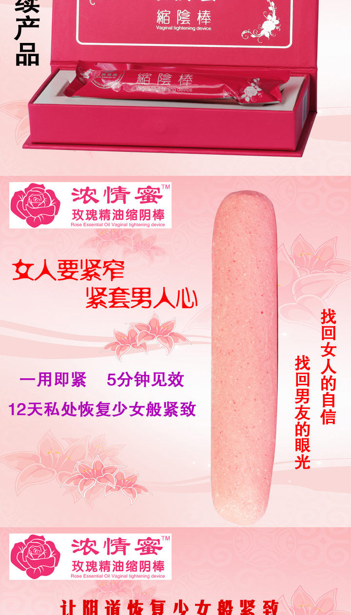 浓情蜜玫瑰精油缩阴棒的功能不仅在于缩阴,更是增进夫妻间感情,增加双方性趣的佳品!