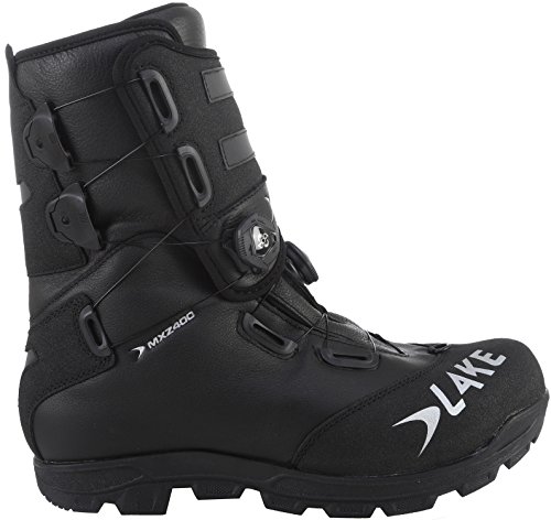 Studio : Lake Publisher : Lake Binding : Misc. Product Description The MXZ400 Men's Winter Cycling Boot is far and away the most wintery boot Lake produces. It's built-up to stand-up to the elements, and its moto-appropriate size hints at its 400g of 3M Thinsulate and generously capacious last, which allows for more insulation in the form of thick sock layering. The last is built to accommodate walking and pedaling, and its wrapped in a layer of Pittards WR100 for water-resistant breathability. That list alone is impressive enough to warrant the MXZ400's status as the greatest Lake of the winter cycling world, but the real magic is the inclusion of Outlast SmartFabric Technology. Outlast incorporates capsules of a phase-change material that shifts between a solid and a liquid state depending on conditions. This act of alchemy has the effect of either absorbing heat or releasing it, so Outlast serves as a smart solution to varying conditions on the bike by actively keeping warming or cooling your feet. The boots are finished with some hardcore winter details, including some armor in the form of Helcor paneling in order to protection the Pittards from the scuffs of bikepacking life. The extended cuff is also an obvious winter superstar, and it fastens with its own dedicated Boa dial so you can batten down the hatches against winter aggression. The rubber outsole sits wide to generate additional traction in slick conditions, and it's equipped with ice grip inserts in order to ensure that it does the job. 0