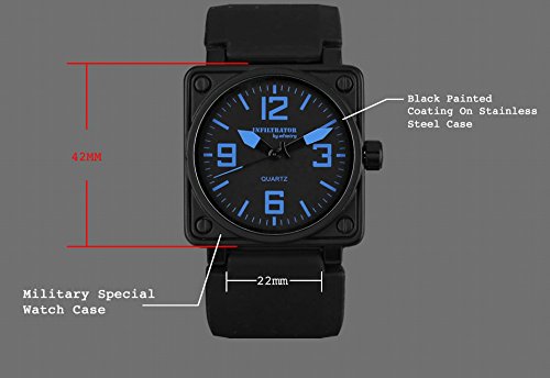 -. Title : INFANTRY Men's Military Army Quartz Sport Analog Wrist Watch Black Rubber Band Square Dial #IF-003-BLU-R
