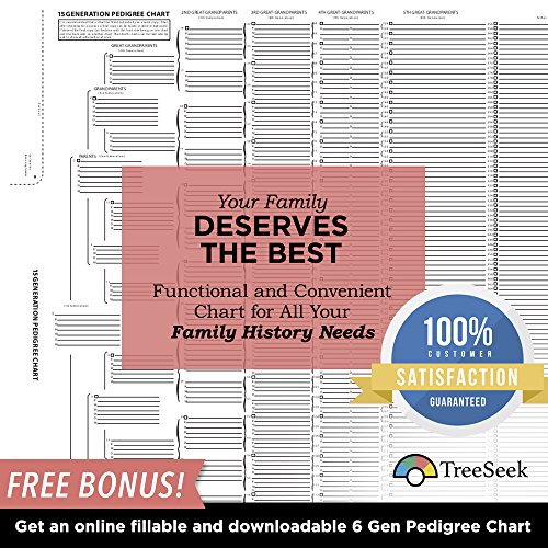 TreeSeek 15 Generation Pedigree Chart | 10 Pack | Blank Genealogy Forms for Family History and Ancestry Work