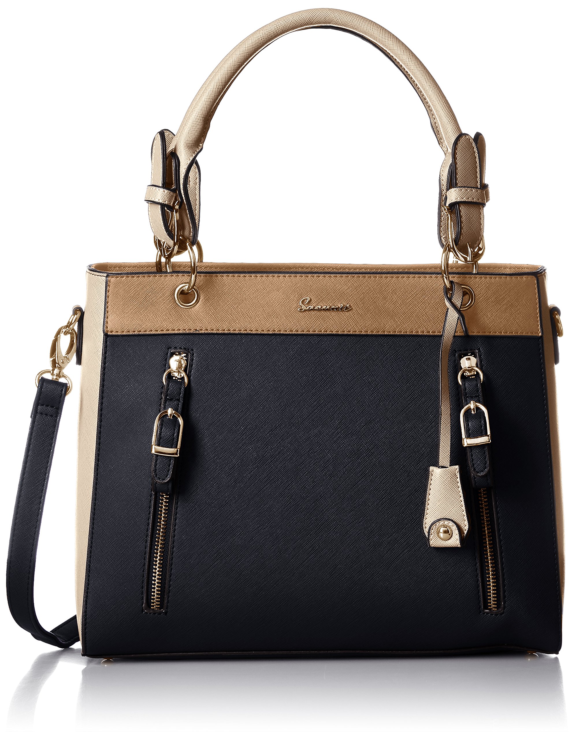 A4 tote bag of bicolor combination It is convenient for commuting to point and handle with zipper is a point