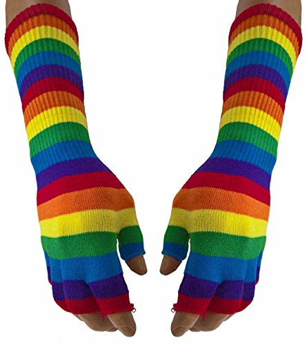 Binding : Apparel Product Description Gothic Arm sleeves Rainbow Super soft fingerless sleeves with rainbow pattern Our supple arm warmers are worn pleasantly. The soft and yet stretchable materials keep the arms warm.