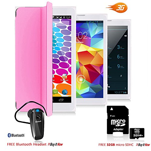 -. Feature : 7.0 inches Android 4.4 Kitkat 3G Phablet 2-in-1 Tablet PC + GSM Wireless SmartPhone (Call as mobile phone) with FREE Smart Cover Case Built-in, Google Play Store and HD Capacitive Multi-Touch Screen / GSM Mobile Cell Phone - Support 3G GSM QuadBand: GSM 850/900/1800/1900MHz WCDMA 850/2100MHz|Make and receive calls directly from the tablet itself with the built-in MIC and speaker / Powered by MTK MT8312 DualCore Processor 1.2GHz CPU, 8GB Internal Memory, Latest Android 4.4 Kitkat Operating System, Integrated 802.11 b/g/n, Bluetooth, Dual-Camera, Dual Sim and more. / WiFi 802.11 b/g/n Support - Connect to internet for A full Internet experience | Bluetooth enabled - connect to any bluetooth headset handsfree / Support Google Play Store and preinstalled - access to millions of free and paid-for applications available to download straight to your Smartwatch