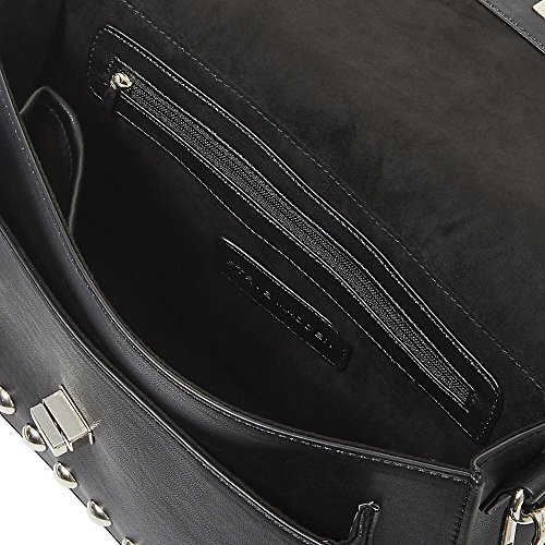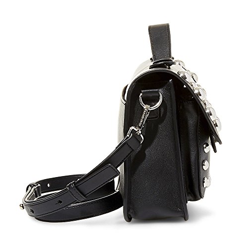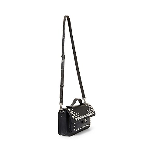 Steve Madden Mary Nonleather Frontflap Silver Studded Satchel Handbag, Black
