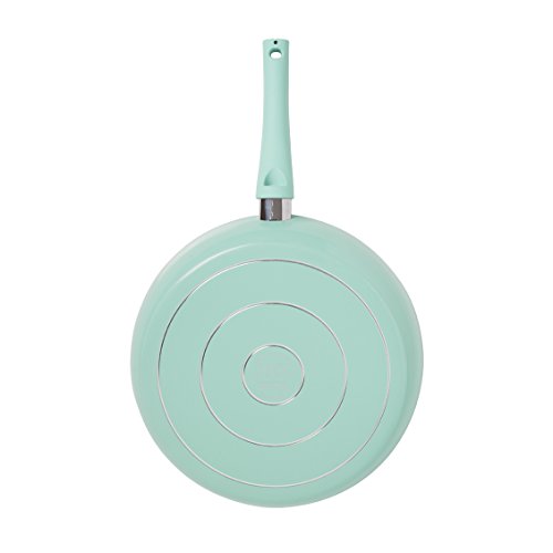 IKO's Crema Collection provides superior level of eco-concious cooking performance in soft pastel colors to enliven today's kitchen. It's forged aluminum body is designed with a heavier gauge aluminum base for superior evenness and heat distribution where it counts most. Coupled with IKO's Cera2 Dual Layer Ceramic Non Stick, the collection inspires and pleases the contemporary cook with both performance and ease of use. Kindly follow these instructions for use and care:1. Before first use, wash pan in warm soapy water and dry. 2. Use a small amount of oil on your pan when cooking. Oil sprays are not recommended. 3. Plastic or wooden utensils are not recommended. 4. Use low to medium heat. Over-heating can damage the pan's surface. 5. Your pan is dishwater safe but we recommend hand washing with warm soapy water. 6. To store, we recommend hanging your pan from a pot rack. This will protect its surface.Feature