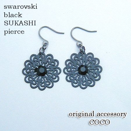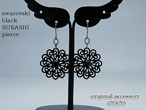 원본상품명: スワロフスキ? 透かし メタル レ?ス ブラック ピアス (S) ? レディ?ス チタン フック ぶらさがり 金? アレルギ? パ?ティ? ドレス 普段使い 手作り 日本製 swarovski