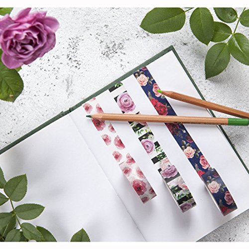 - Made with premium writable washi paper (Japanese paper) and sticky environmental glue. Beautiful roses, pink flowers, navy, white, black colors designs, perfect decorating tool for mostly any project or task.