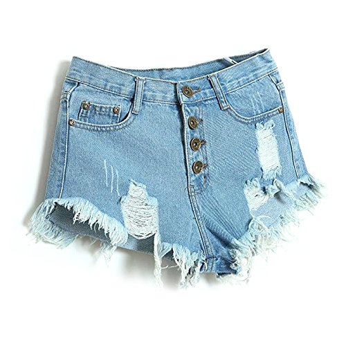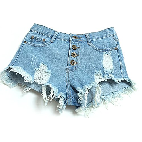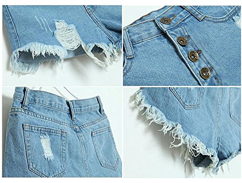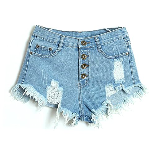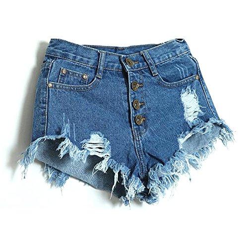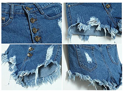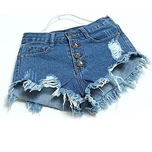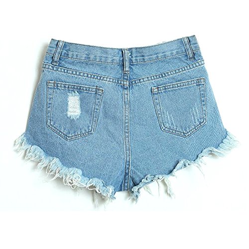 -. Title : Aisa Womens Blue Mid Waist Ripped Hole Short Jeans Denim Shorts