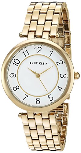 Watch Sizing Guide Find a clean look to go with your everyday attire with this gorgeous Anne Klein® watch! Stainless steel case. Gold-tone stainless steel bracelet with fold-over, double push-button release. Round face. Three-hand analog display with quartz movement. Dial features gold-tone hands and Anne Klein detailing. Gold-tone bezel. Water resistant. Display case included. Imported. Measurements: Case Height: 34 mm Case Width: 34 mm Case Depth: 9 mm Band Width: 5⁄8 in Band Circumference/Length: 6 1⁄2 in Weight: 2.2 oz This product may have a manufacturer's warranty. Please visit the manufacturer's website or contact us at warranty@support.zappos.com for full manufacturer warranty details.Feature